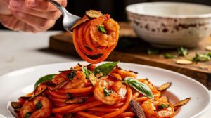 Smoky Tomato Pasta With Shrimp and Almonds Recipe • 1 hr